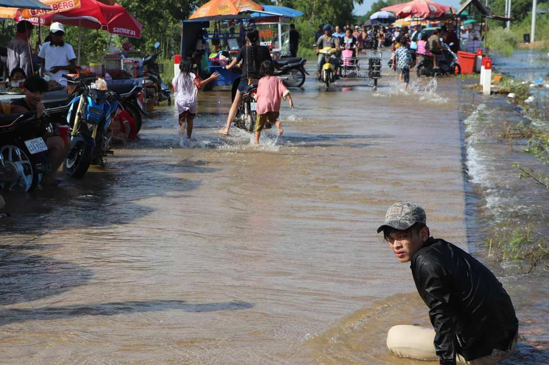 ខេត្តបន្ទាយមានជ័យ ៖ ទឹកជំនន់ហូរកាត់ផ្លូវមួយកន្លែង ស្ថិតក្នុងភូមិសាស្ត្រឃុំប្ញស្សីក្រោក ស្រុកមង្គលបូរី ទល់នឹងសង្កាត់កោះពងសត្វ ក្រុងសិរីសោភ័ណ បែរក្លាយទៅជាកន្លែងលេងសប្បាយរបស់ប្រជាពលរដ្ឋ និងអ្នកធ្វើរដំណើរក្នុងការមកលេងទឹកជំនន់នេះ ក្នុងនោះ អាជ្ញាធរបានធ្វើការជូនដំណឹងផងដែរ ឱ្យមានការប្រុងប្រយ័ត្នខ្ពស់ចំពោះកូនចៅ ប្រយ័ត្នកូនចៅលង់ទឹកជាយថាហេតុ ។