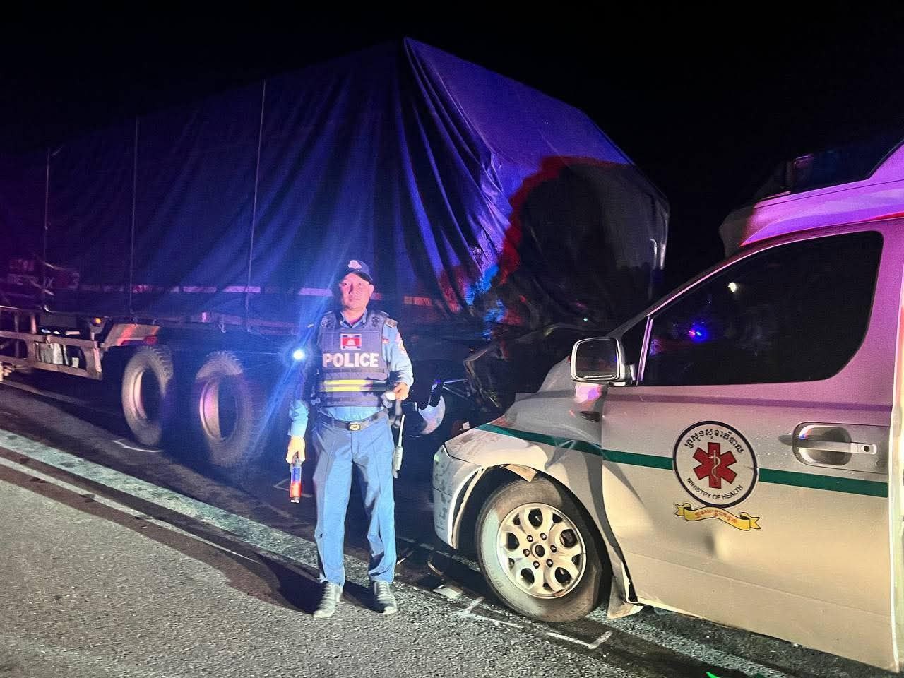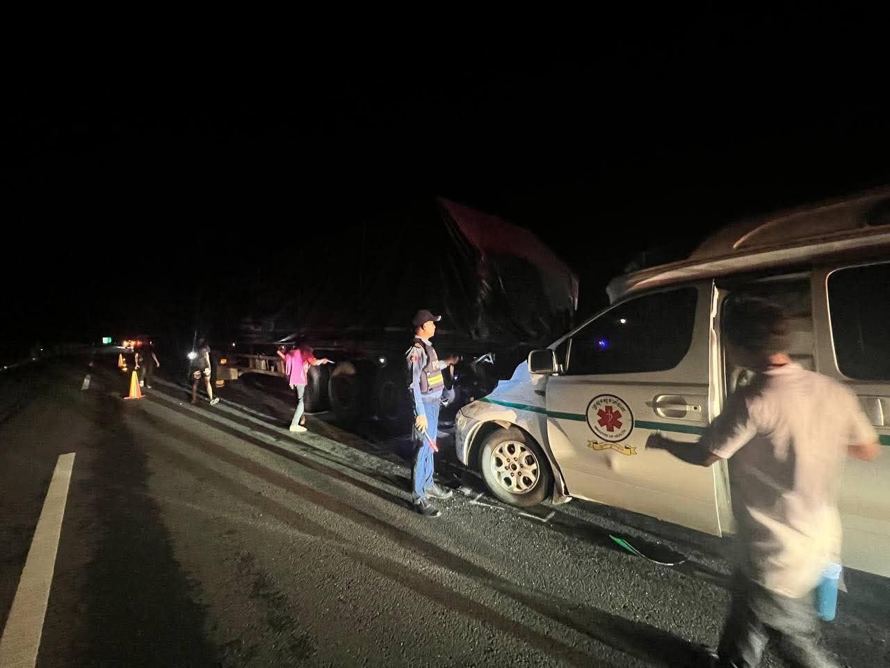 កំពង់ស្ពឺ៖ មានករណីគ្រោះថ្នាក់ចរាចរណ៍រវាងរថយន្ដគ្រឿង ម៉ាក HYUNDAI STAREX ពណ៌ស ពាក់ផ្លាកលេខ រដ្ឋ12 2-1479 (រថយន្តដឹកអ្នកជំងឺ) បុកពីក្រោយរថយន្តកុងតឺន័រ នៅវេលាម៉ោង ១០:១៦នាទីយប់ ថ្ងៃទី១ ខែតុលា ឆ្នាំ២០២៥។