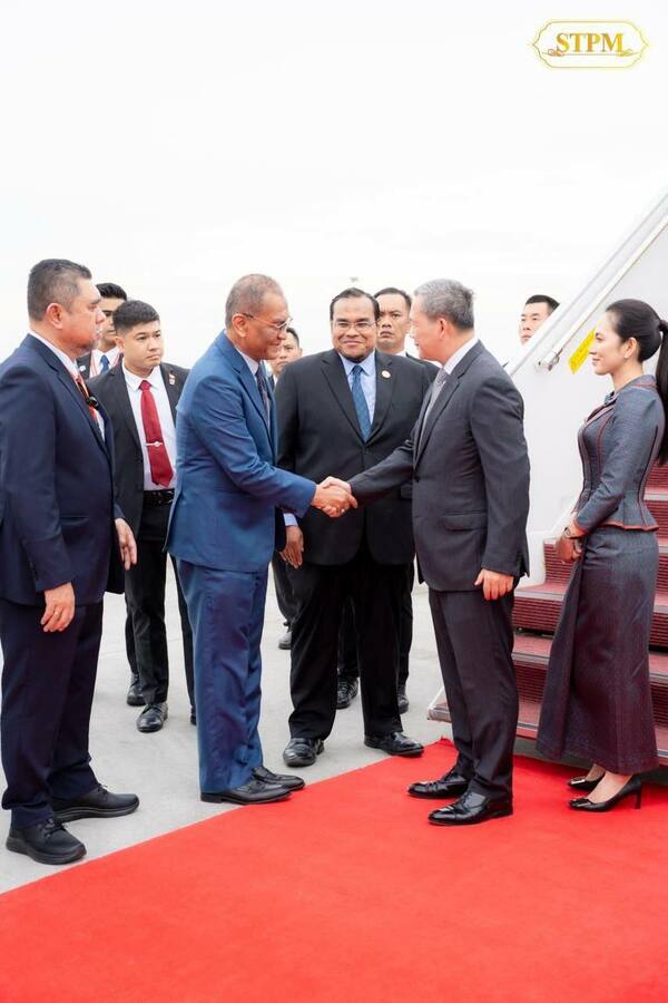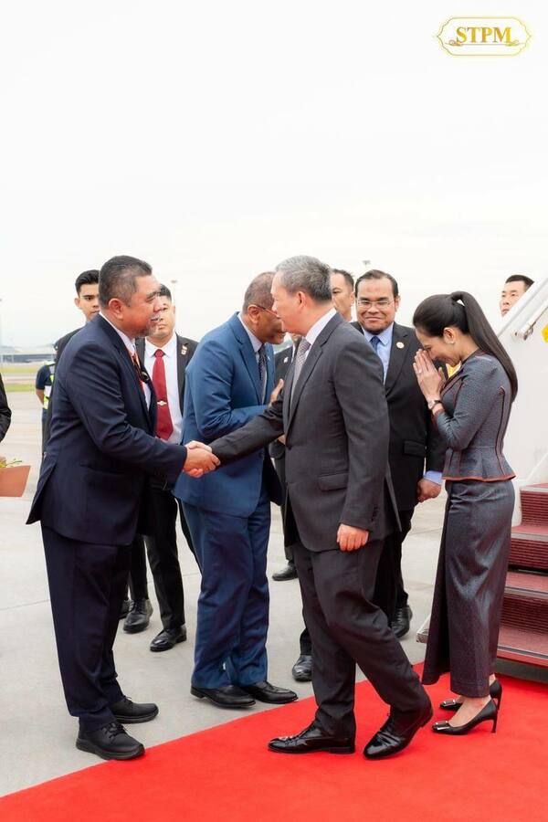 សម្តេចមហាបវរធិបតី ហ៊ុន ម៉ាណែត នាយករដ្ឋមន្ត្រីនៃព្រះរាជាណាចក្រណាចក្រកម្ពុជា និងលោកជំទាវបណ្ឌិត ពេជ ចន្ទមុន្នី ដឹកនាំគណៈប្រតិភូជាន់ខ្ពស់អញ្ជើញដល់អាកាសយានដ្ឋានអន្តរជាតិគូឡាឡាំពួ ប្រកបដោយសុវត្ថិភាព ដោយមានការទទួលស្វាគមន៍ពីសំណាក់ ឯកឧត្តមបណ្ឌិត Datuk Seri Haji Dzulkefly bin Ahmad រដ្ឋមន្ត្រីក្រសួងសុខាភិបាល នៃប្រទេសម៉ាឡេស៊ី នារសៀលថ្ងៃទី២៥ ខែតុលា ឆ្នាំ២០២៥។