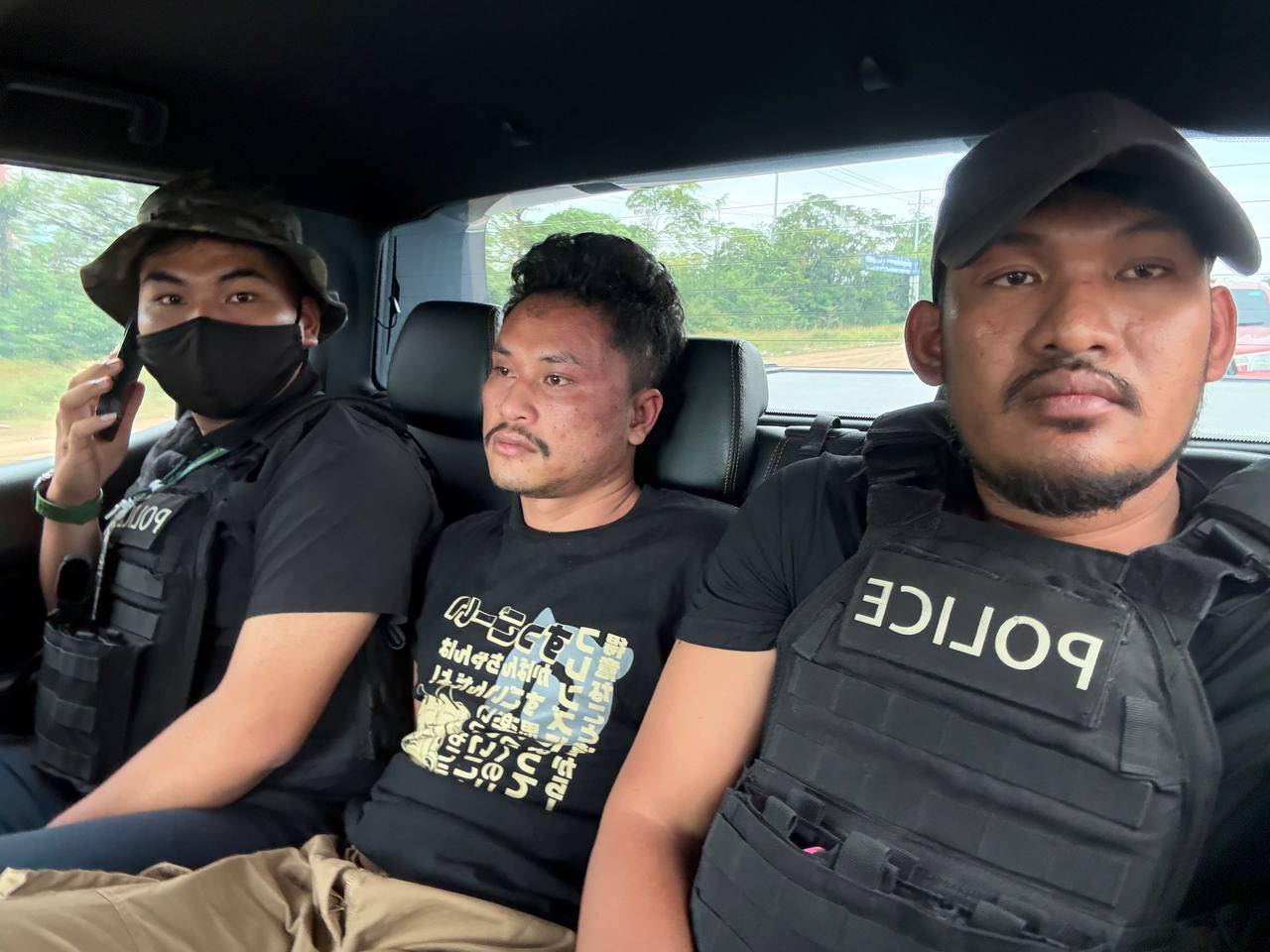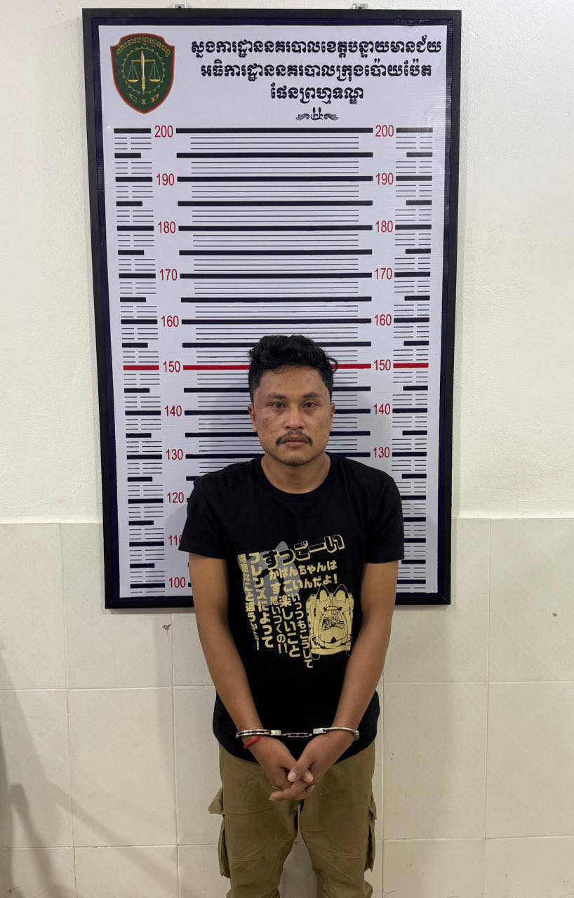 ២.ឈ្មោះ ថន សៀងហៃ ភេទប្រុស អាយុ ២៩ឆ្នាំ ជនជាតិខ្មែរ (ជាអ្នកដឹកជនសង្ស័យរត់គេចខ្លួន) ឃាត់ខ្លួនត្រង់ចំណុចភូមិទួលពង្រ សង្កាត់ផ្សារកណ្តាល ក្រុងប៉ោយប៉េត ខេត្តបន្ទាយមានជ័យ។
