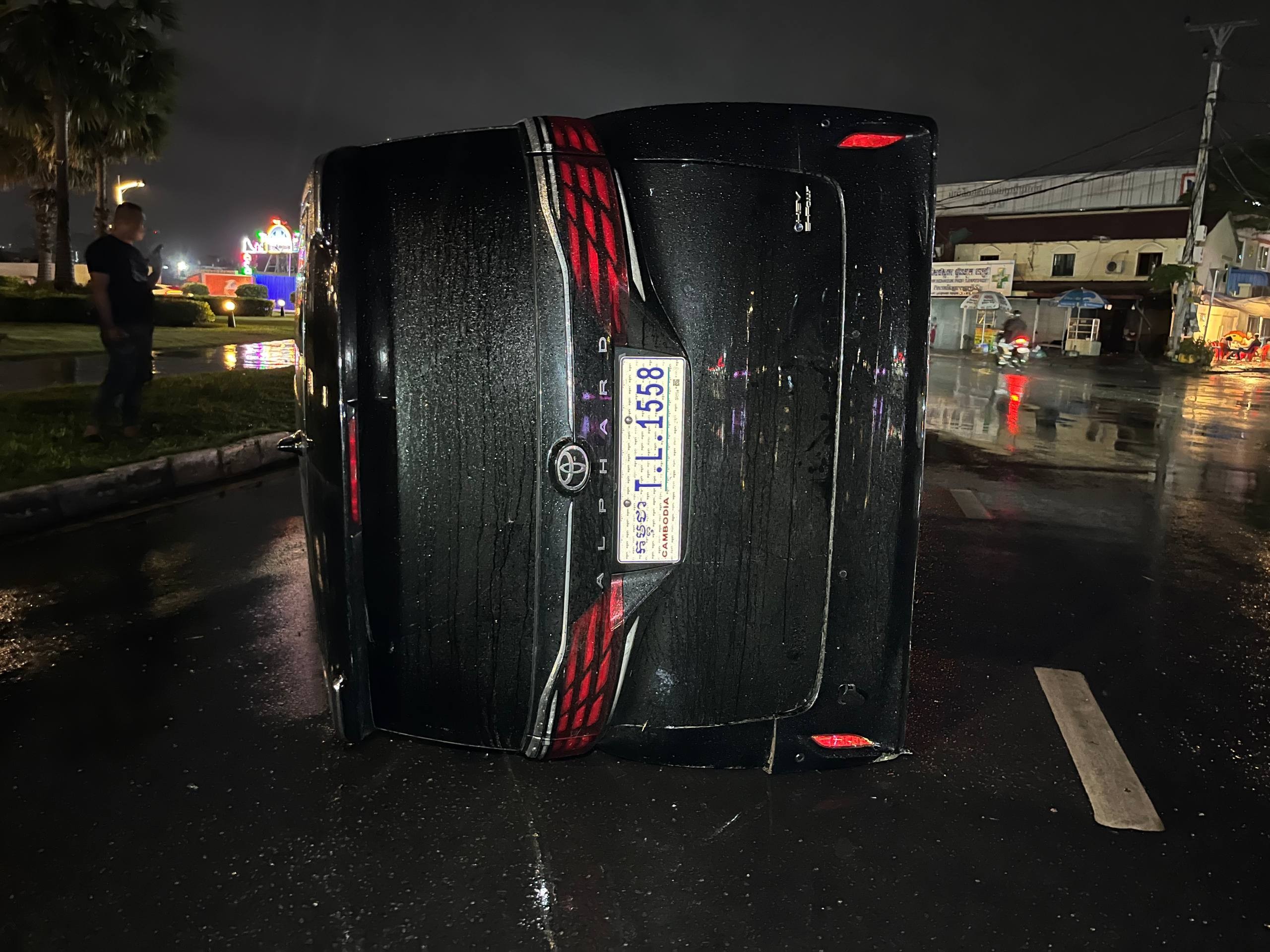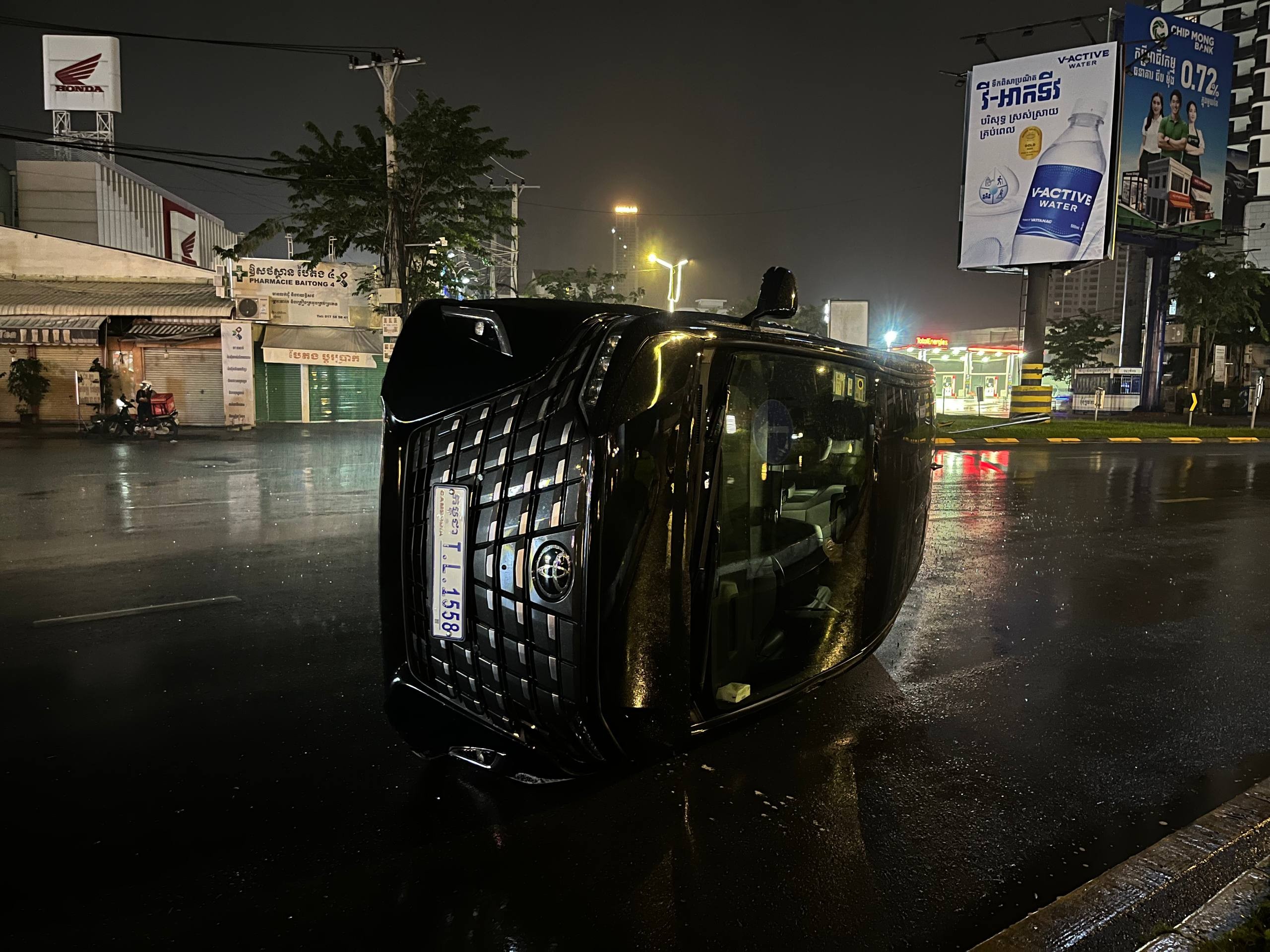 (ភ្នំពេញ) ៖ មានករណីក្រឡាប់រថយន្តអាល់ហ្វាតស៊េរីទំនើប ១គ្រឿង នៅក្បែររង្វង់មូលកងព្រហ្ម បន្ទាប់ពីបើកឡើងខឿនសួនច្បារ និងបុករះផ្ទាំងស្លាកសញ្ញាចរាចរណ៍អស់ច្រើនផ្ទាំងកាលពីវេលាម៉ោង ១២:១២នាទីរំលងអធ្រាត្រ ឈានចូលថ្ងៃទី២៩ ខែតុលា ឆ្នាំ២០២៥ ស្ថិតនៅខាងកើតរង្វង់មូលកងព្រហ្ម សង្កាត់ជ្រោយចង្វារ ខណ្ឌជ្រោយចង្វារ រាជធានីភ្នំពេញ។
