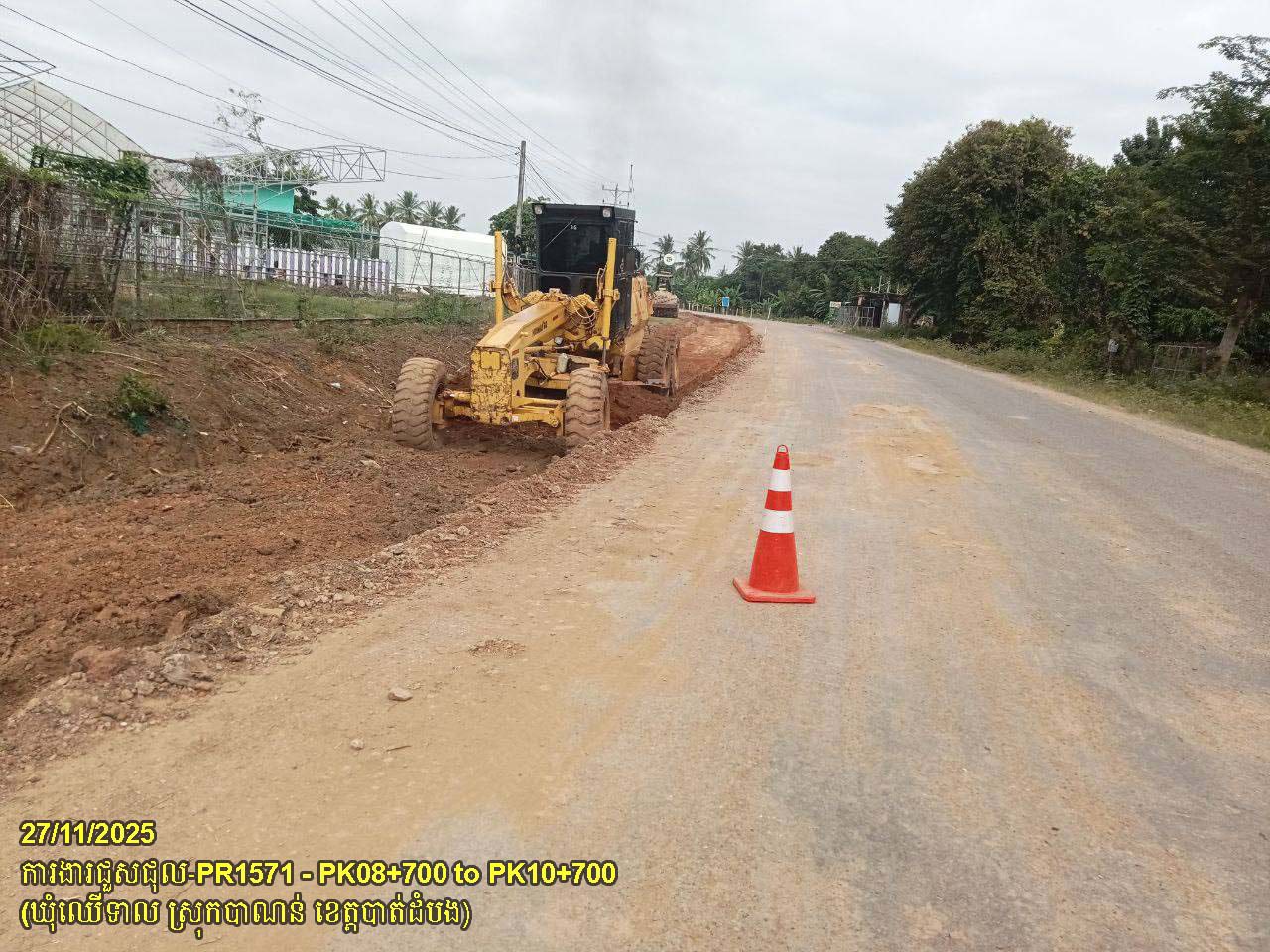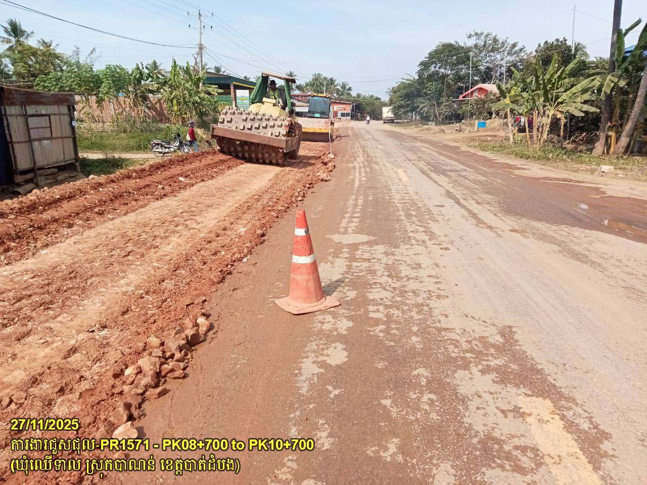 ៣. បន្តការងារជួសជុលផ្លូវខេត្តលេខ ១៥៧១៖ ការងារកាយដីគ្មានគុណភាពលើតួថ្នល់ពង្រីក ដឹកចេញ និងចាក់បំពេញដីល្បាយថ្ម ធ្វើគ្រឹះរង ចន្លោះគ.ម ០៨+៧០០ ដល់គ.ម១០+៧០០ ស្ថិតនៅក្នុងឃុំឈើទាល ស្រុកបាណន់។