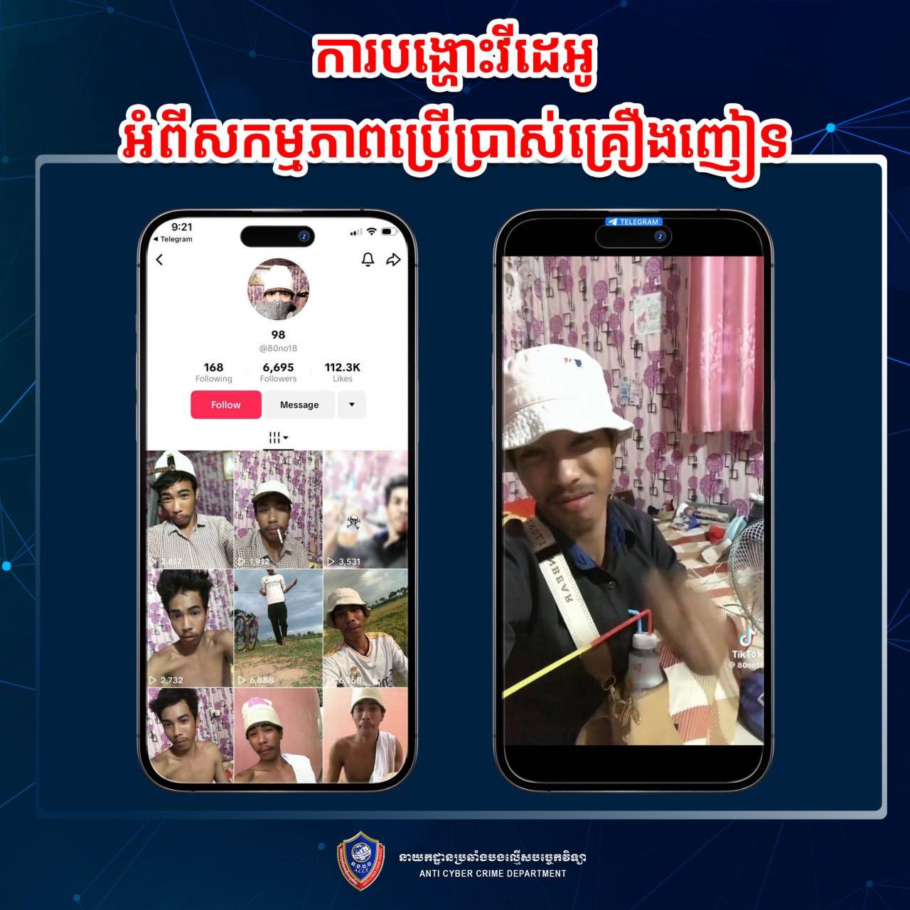 យោងតាមបទបញ្ជារបស់ ឯកឧត្ដម នាយឧត្ដមសេនីយ៍ ស ថេត អគ្គស្នងការនគរបាលជាតិ និងតាមការចង្អុលណែនាំពី ឯកឧត្ដម ឧត្ដមសេនីយ៍ឯក អគ្គស្នងការរងនគរបាលជាតិ នៅថ្ងៃទី០៥ ខែធ្នូ ឆ្នាំ២០២៥ នាយកដ្ឋានប្រឆាំងបទល្មើសបច្ចេកវិទ្យា សហការជាមួយកម្លាំងស្នងការដ្ឋាននគរបាលខេត្តព្រៃវែង បានធ្វើការឃាត់ខ្លួនជនសង្ស័យ០១រូបឈ្មោះ ម៉ោក ណា ភេទប្រុស អាយុ ២២ឆ្នាំ ពាក់ព័ន្ធនឹងការបង្ហោះវីដេអូ អំពីសកម្មភាពប្រើប្រាស់គ្រឿងញៀននៅលើបណ្ដាញសង្គម តិកតុក និង ហ្វេសប៊ុក។