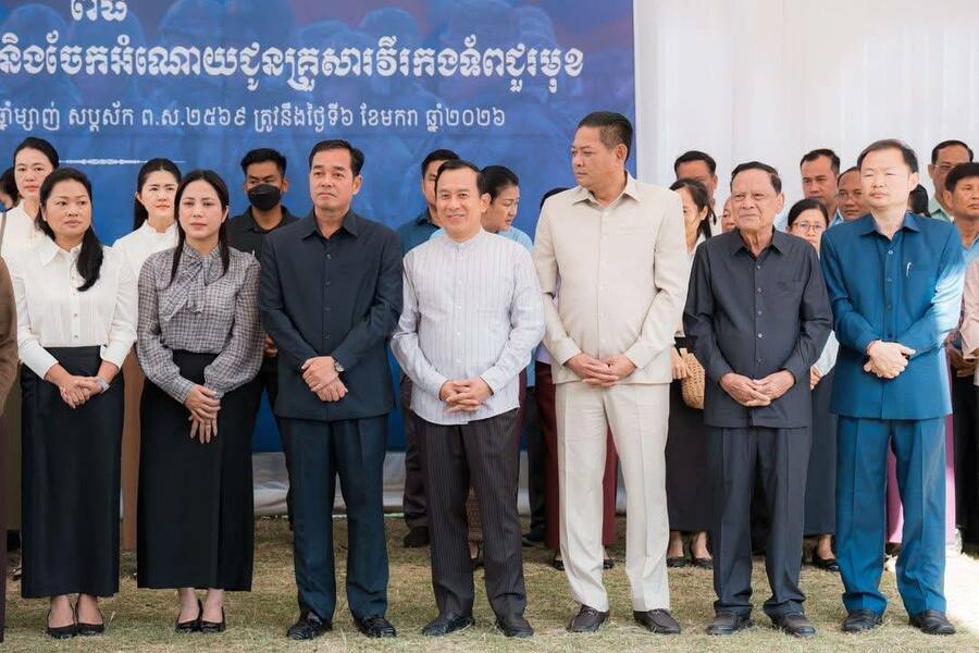 លោកជំទាវបណ្ឌិត ពេជ ចន្ទមុន្នី ហ៊ុន ម៉ាណែត បានពាំនាំប្រសាសន៍ផ្តាំផ្ញើសួរសុខទុក្ខប្រកបដោយការគិតគូរដ៏ខ្ពង់ខ្ពស់បំផុតរបស់សម្តេចតេជោ ហ៊ុន សែន និងសម្តេចកិតិ្តព្រឹទ្ធបណ្ឌិត ព្រមទាំងសម្តេចធិបតី ហ៊ុន ម៉ាណែត ជូនក្រុមគ្រួសាររបស់វីរកងទ័ព វីរនគរបាលគ្រប់រូប សម្រាប់ពិធីសំណេះសំណាល សួរសុខទុក្ខ និងចែកអំណោយជូនគ្រួសារវីរកងទ័ពជួរមុខ នៅខេត្តកំពង់ចាម នាព្រឹកថ្ងៃទី៦ ខែមករា ឆ្នាំ២០២៦។