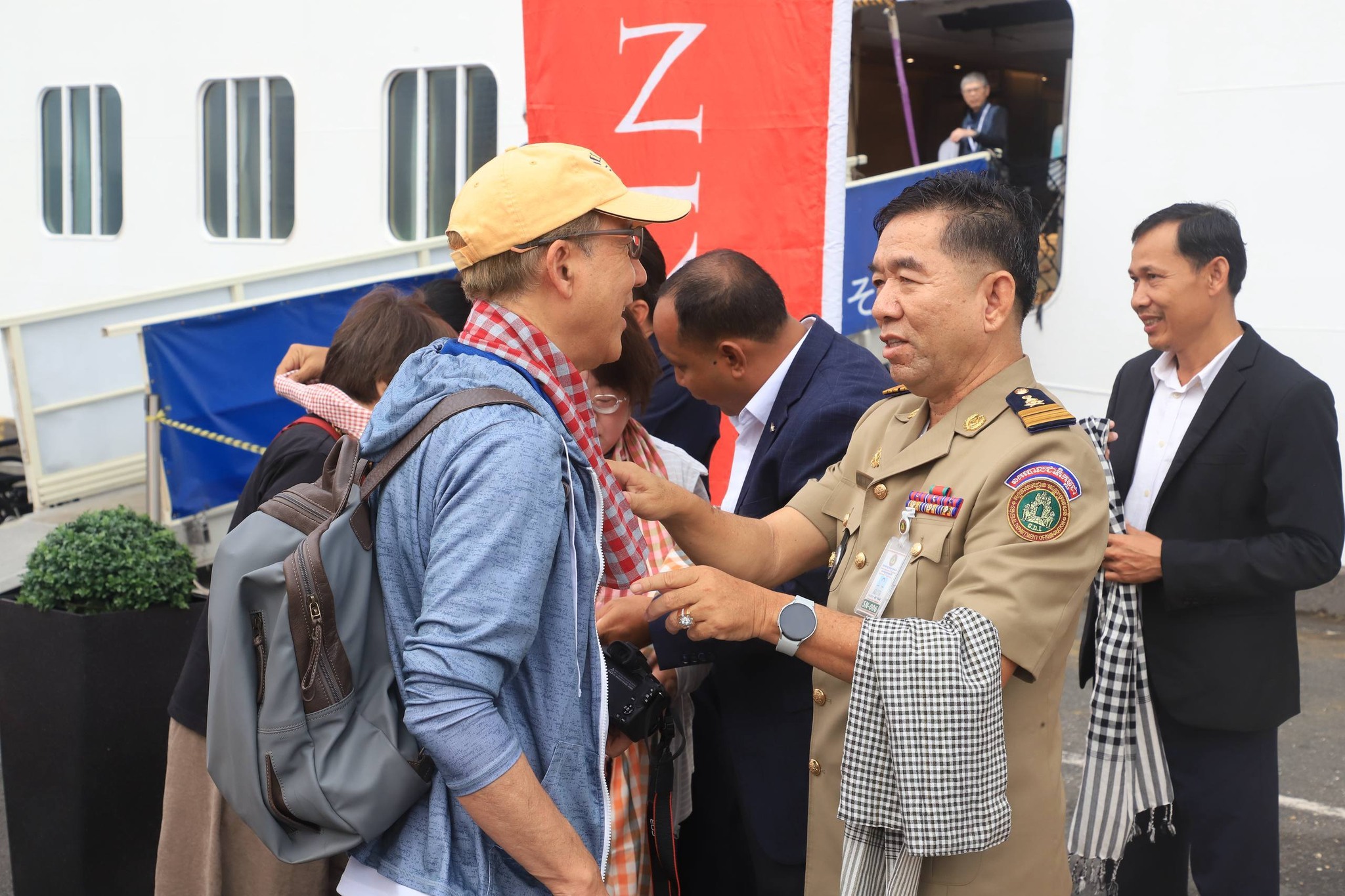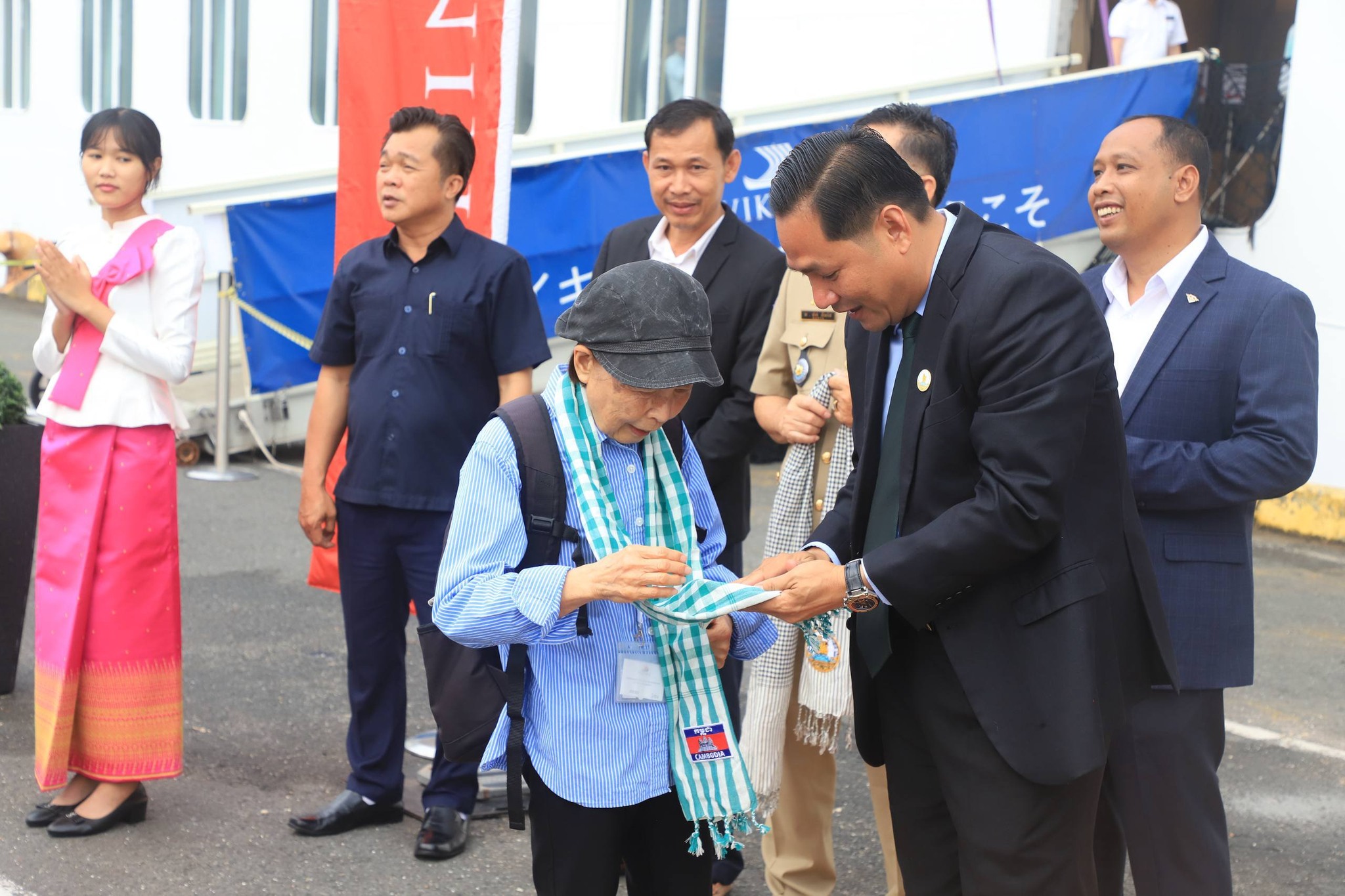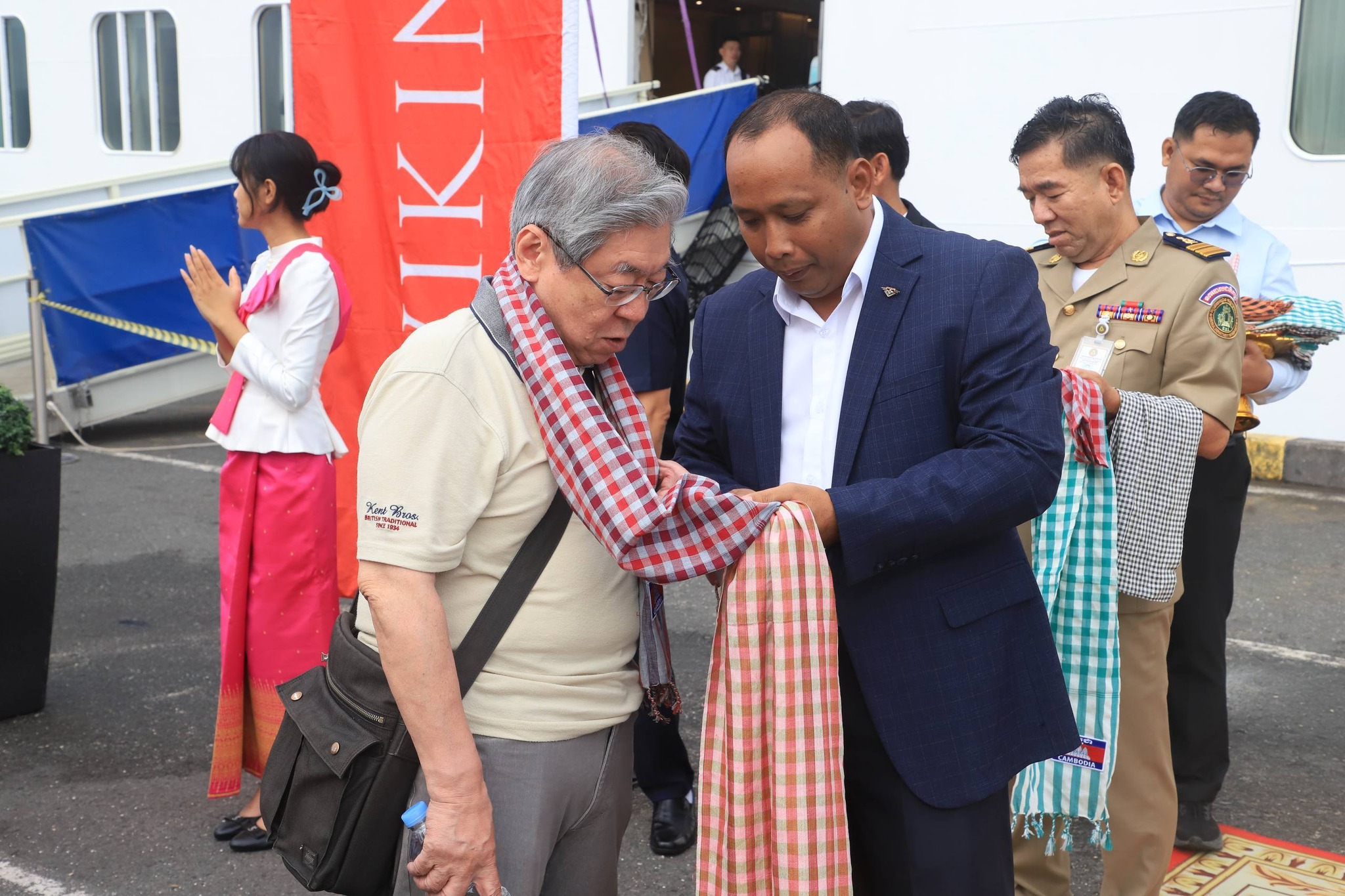 ក្នុងឱកាសនោះ លោក សាមុត សុធារិទ្ធិ អភិបាលរងនៃគណៈអភិបាលខេត្តព្រះសីហនុ បានអញ្ជើញធ្វើការទទួលស្វាគមន៍ និងគារវកិច្ចយ៉ាងកក់ក្តៅចំពោះភ្ញៀវទេសចរទាំងអស់ ដែលបានអញ្ជើញមកទស្សនាខេត្តព្រះសីហនុ ព្រមទាំងបំពាក់ក្រមាជូនភ្ញៀវទុកជាវត្ថុអនុស្សាវរីយ៍ ដើម្បីបង្ហាញពីអធ្យាស្រ័យ និងវប្បធម៌បដិសណ្ឋារកិច្ចរបស់ប្រជាជនកម្ពុជា។