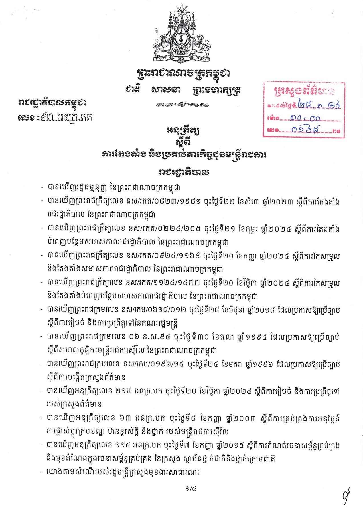 សូមគោរពអបអរសាទរ លោក ជា កែវចិន្តា ដែលទទួលបាននូវសេចក្តីទុកចិត្តពីថ្នាក់ដឹកនាំ ក្នុងការតែងតាំងឡេីងវិញក្នុងមុខតំណែងជាប្រធាននាយកដ្ឋាននីតិកម្ម នៃក្រសួងព័ត៌មាន