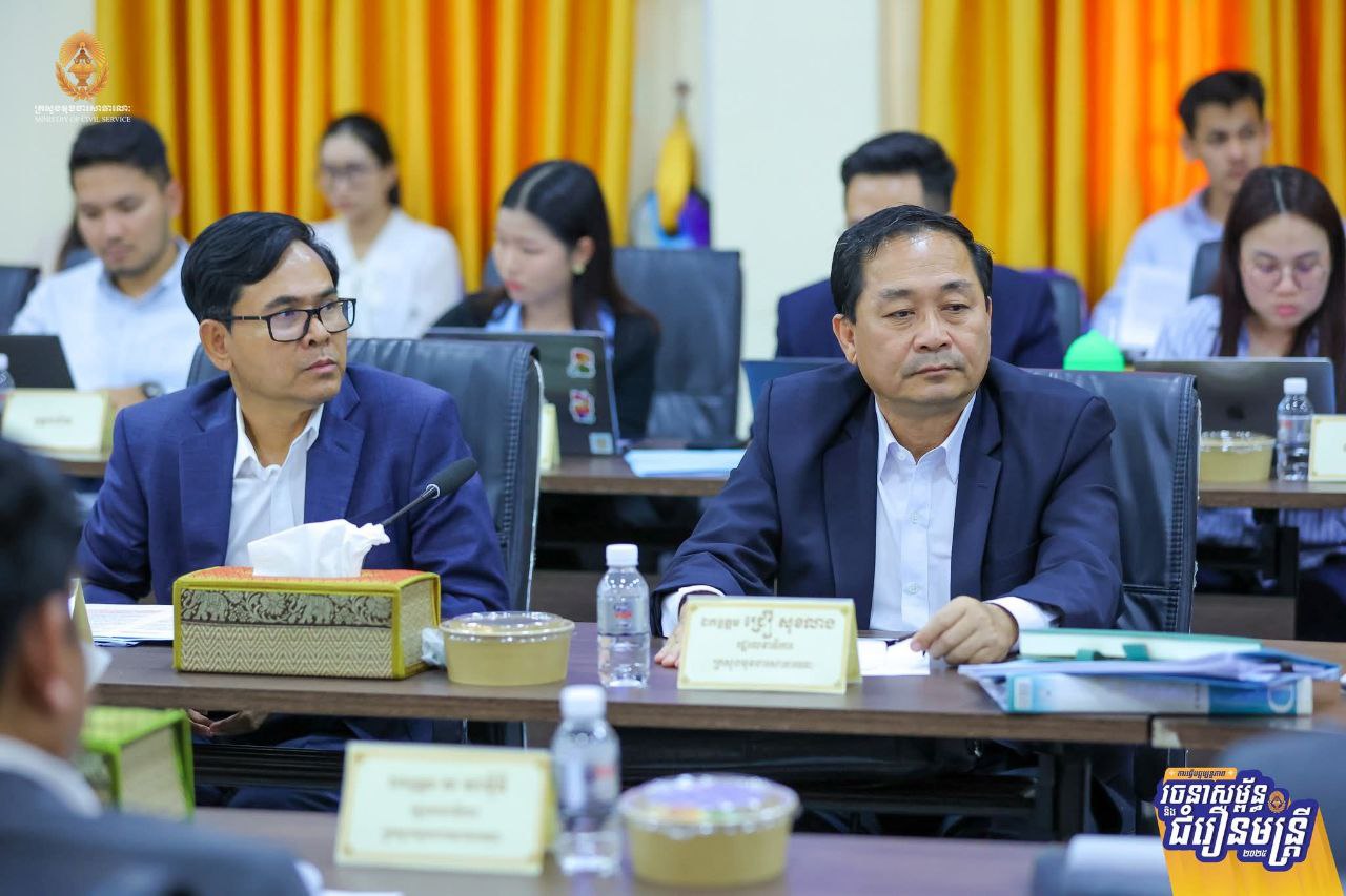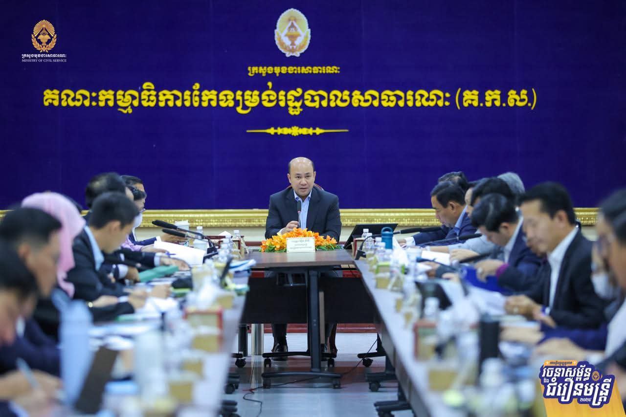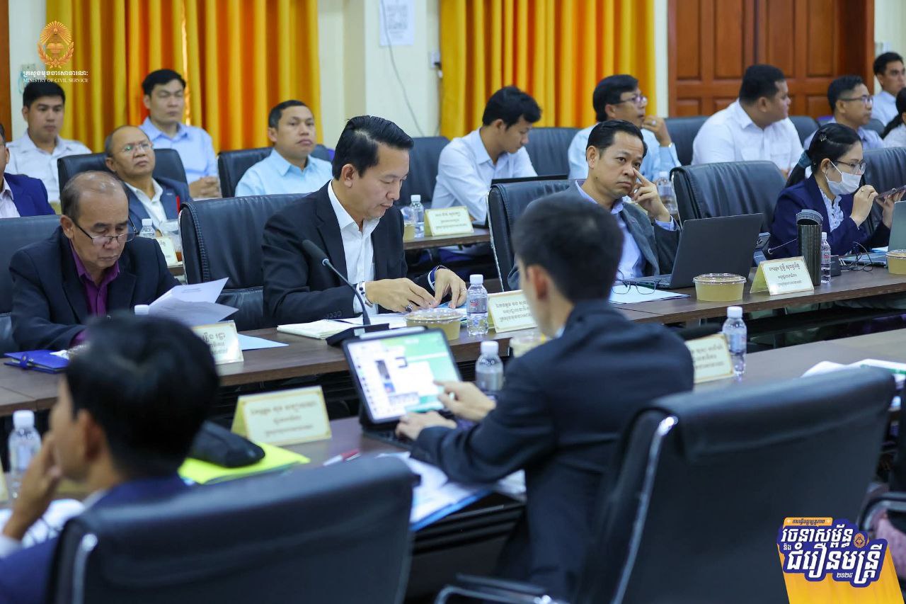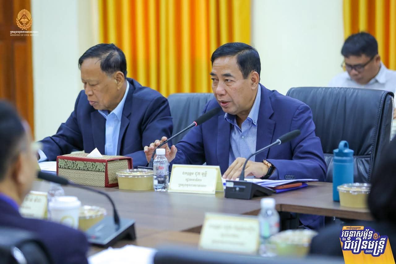 ដើម្បីដកស្រង់បទពិសោធពីការធ្វើជំរឿនមន្ត្រីជាក់ស្តែងនៅតាមរចនាសម្ព័ន្ធនៃអង្គភាពសុខាភិបាលមូលដ្ឋាន និងគ្រឹះស្ថានសិក្សាសាធារណៈ ស្ថិតក្នុងភូមិសាស្ត្ររាជធានីភ្នំពេញ សម្រាប់ជាមេរៀនក្នុងការធ្វើជំរឿនមន្ត្រីជាក់ស្តែងនៅតាមខេត្តទាំង២៤ នាពេលខាងមុខ ឯកឧត្តម ហ៊ុន ម៉ានី ឧបនាយករដ្ឋមន្ត្រី រដ្ឋមន្ត្រីក្រសួងមុខងារសាធារណៈ និងជាប្រធានគណៈកម្មការជំរឿន បានដឹកនាំកិច្ចប្រជុំពិនិត្យវាយតម្លៃការចុះធ្វើបច្ចុប្បន្នភាពរចនាសម្ព័ន្ធ និងជំរឿនមន្ត្រីជាក់ស្តែងនៅតាមរចនាសម្ព័ន្ធនៃគ្រឹះស្ថានសិក្សាសាធារណៈ និងអង្គភាពសុខាភិបាលមូលដ្ឋាន នៅរាជធានីភ្នំពេញ នារសៀលថ្ងៃទី២៤ ខែកម្ភៈ ឆ្នាំ២០២៦។