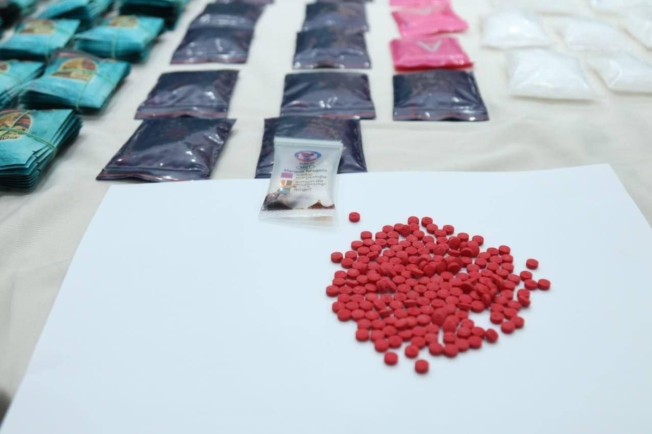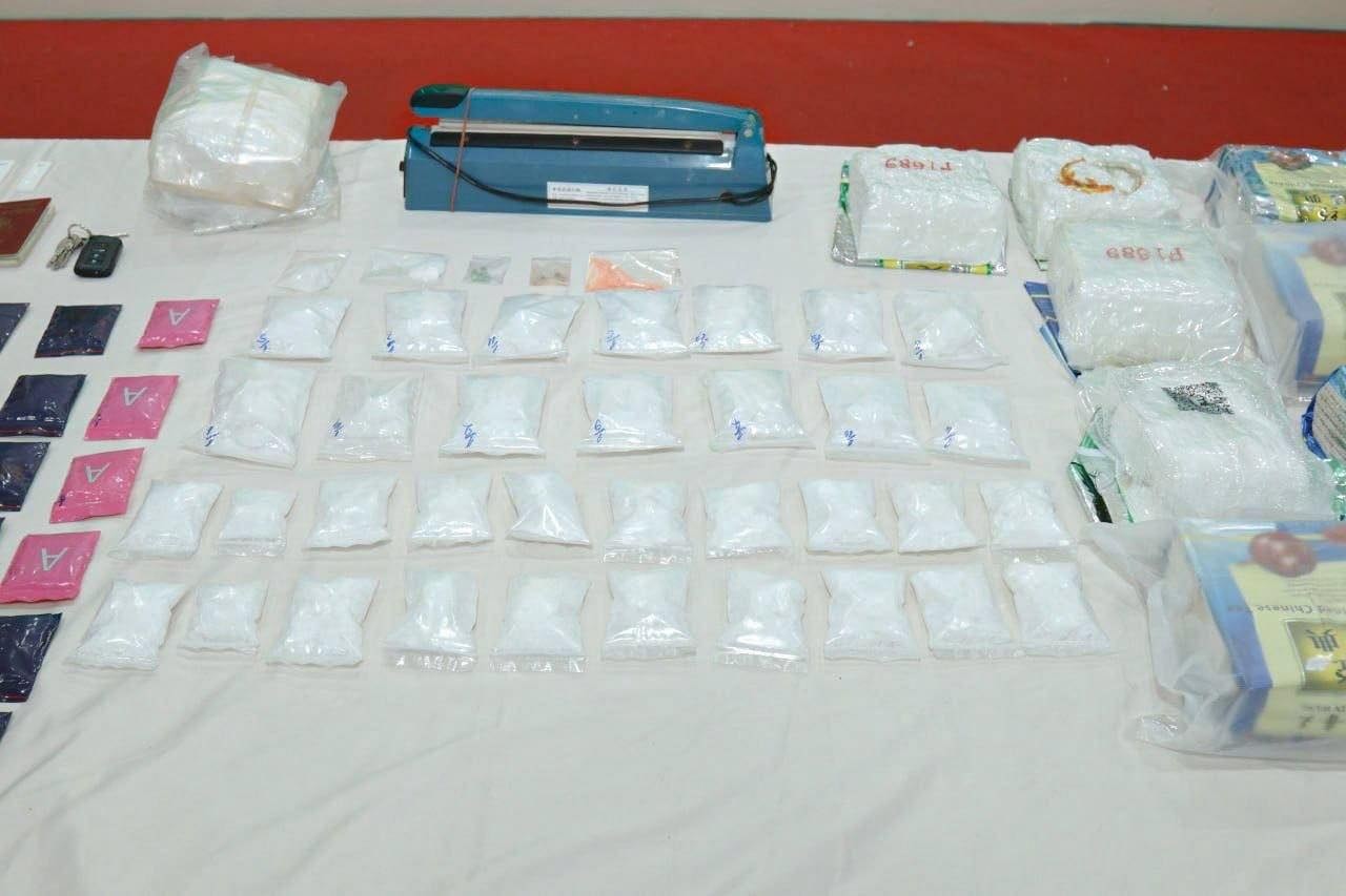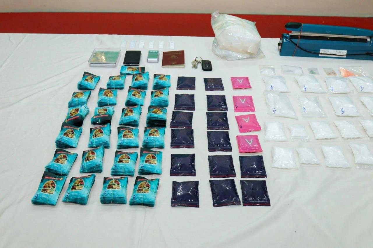វត្ថុតាងដែលដកហូតបាន រួមមាន៖ សារធាតុញៀនសរុបជាង ១៥គីឡូក្រាម (រួមមាន ម្សៅក្រាមពណ៌សថ្លា (MET) ជិត ១៤.៤គីឡូក្រាម, ថ្នាំគ្រាប់ WY ជាង ៣,៥០០គ្រាប់ និងម្សៅពណ៌ទឹកក្រូច (Ketamine) ជាង ០១គីឡូក្រាម), រថយន្ត LEXUS NX200T ចំនួន ០១គ្រឿង, ម៉ូតូ ០៣គ្រឿង, ម៉ូតូកង់បី (PassApp) ០១គ្រឿង និងទូរស័ព្ទដៃ ០៩គ្រឿង, កាំភ្លើងកែច្នៃ ០១ដើម, ជញ្ជីងថ្លឹងថ្នាំញៀន ០៣គ្រឿង, ម៉ាស៊ីនអ៊ុតមាត់ថង់ ០១គ្រឿង ព្រមទាំងលិខិតឆ្លងដែន និងសម្ភារៈវេចខ្ចប់មួយចំនួនធំ។