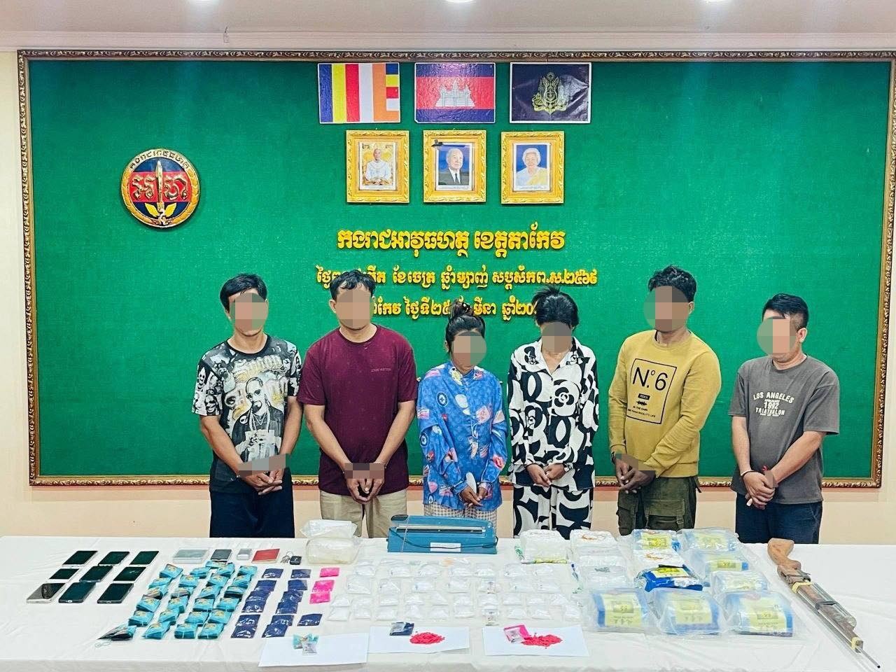 (តាកែវ)៖ ក្រោមបទបញ្ជាយ៉ាងម៉ឺងម៉ាត់របស់ លោកឧត្តមសេនីយ៍ត្រី សេង មហា មេបញ្ជាការកងរាជអាវុធហត្ថខេត្តតាកែវ និងមានការសម្របសម្រួលនីតិវិធីពីលោក ឯក ឆេងហួត ព្រះរាជអាជ្ញាអមសាលាដំបូងខេត្ត កម្លាំងជំនាញកងរាជអាវុធហត្ថ បានបើកប្រតិបត្តិការបង្ក្រាបករណីគ្រឿងញៀនយ៉ាងធំមួយ ដោយពន្លាតដែនសមត្ថកិច្ចពីខេត្តតាកែវ រហូតដល់រាជធានីភ្នំពេញ។