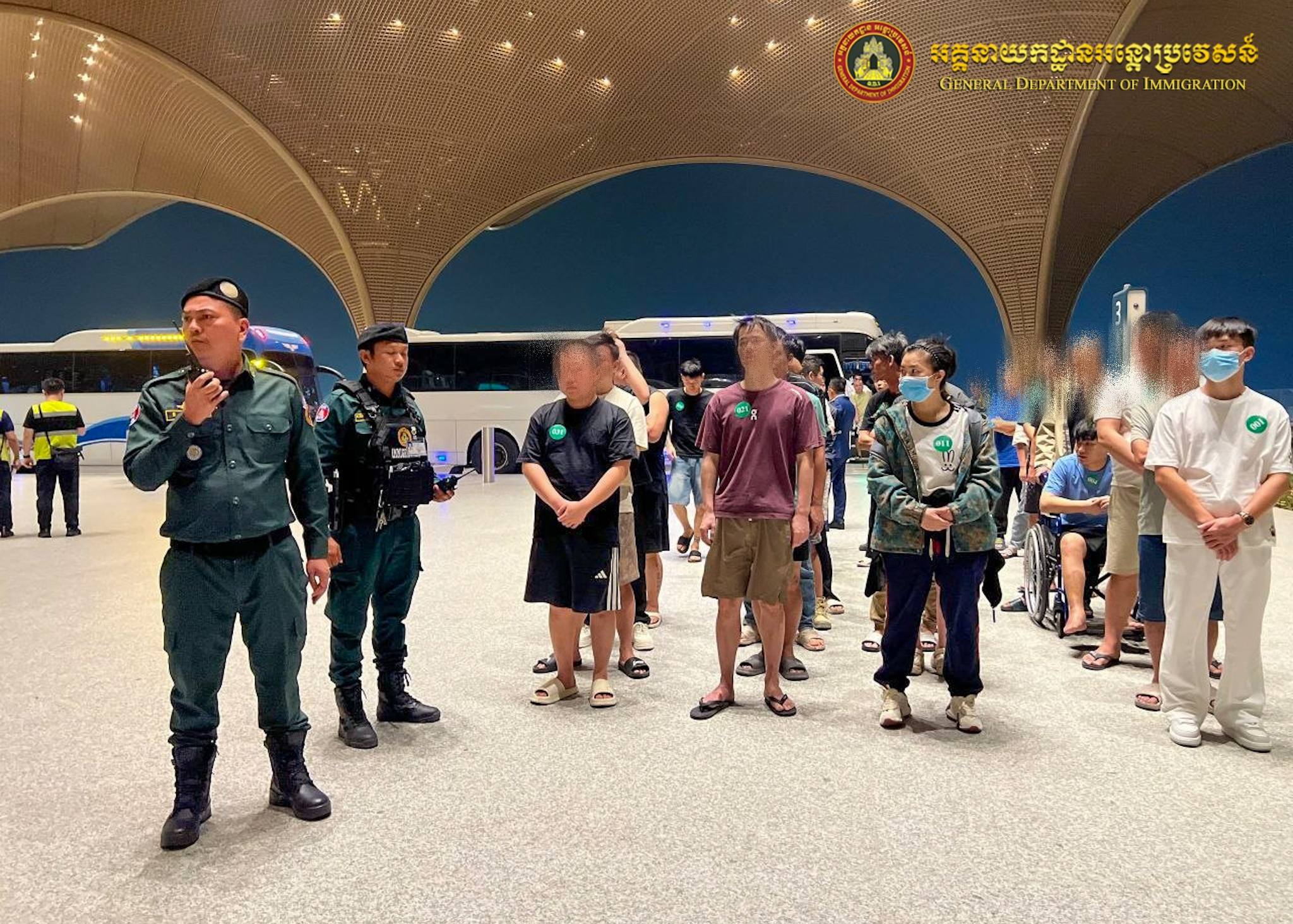 នៅយប់ថ្ងៃទី២៧ ឈានចូលថ្ងៃទី២៨ ខែមីនា ឆ្នាំ២០២៦ អនុវត្តតាមអនុសាសន៍ដ៏ខ្ពង់ខ្ពស់ របស់ឯកឧត្តមអភិសន្តិបណ្ឌិត ឧបនាយករដ្ឋមន្ត្រី រដ្ឋមន្ត្រីក្រសួងមហាផ្ទៃ ឯកឧត្តម សន្តិបណ្ឌិត និងថ្នាក់ដឹកនាំក្រសួងមហាផ្ទៃ ឯកឧត្តម ឧត្តមសេនីយ៍ឯក សុខ វាសនា អគ្គនាយកអន្តោប្រវេសន៍ បានណែនាំឱ្យនាយកដ្ឋានស៊ើបអង្កេត និងអនុវត្តនីតិវិធី សហការជាមួយស្ថានទូតចិនប្រចាំនៅព្រះរាជាណាចក្រកម្ពុជា បន្តធ្វើការបណ្តេញជនជាតិចិនសរុបចំនួន ៣២៧នាក់ (ស្រី២០នាក់) ពាក់ព័ន្ធករណីឆបោកតាមប្រព័ន្ធអនឡាញ (Online Scams) និងករណីលួចស្នាក់នៅ ធ្វើការងារខុសច្បាប់ ត្រូវបានបណ្ដេញចេញតាមរយៈយន្តហោះពិសេស នៅប៉ុស្តិ៍នគរបាលច្រកទ្វារអាកាសអន្តរជាតិតេជោ។