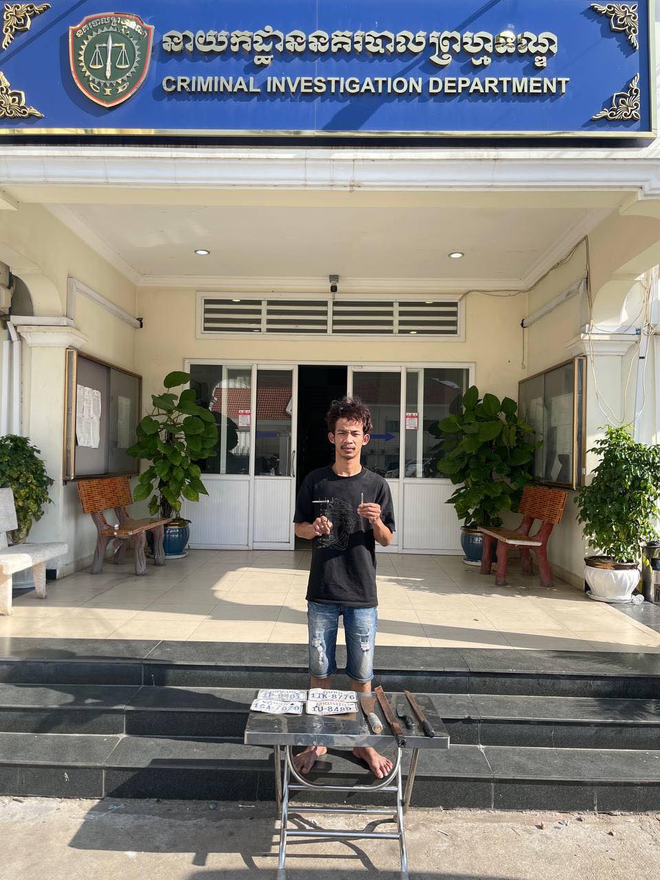 -ស្លាកលេខម៉ូតូចំនួន ០៤សន្លឹក (ភ្នំពេញ1IK-8776, ភ្នំពេញ1GA-7070, បាត់ដំបង1P-9401 និង ស្វាយរៀង1U-8489)។